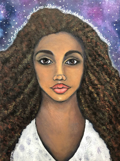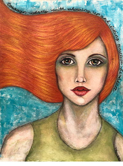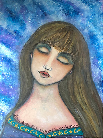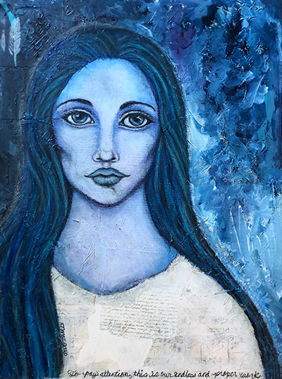 "Theresa is such a joyful artist and it shows in her work. As I get ready for my day, I give pause to the words she has chosen for her pieces and to her magical womanfolk."